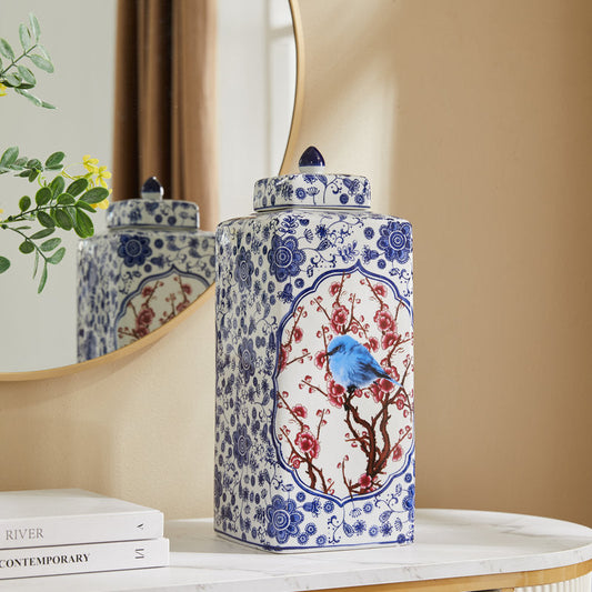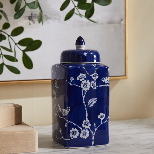 Acadia Handmade Blue White Ceramic Ginger Jar / Table Vase