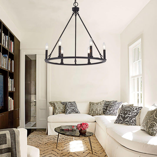 Birdena 6-Light Candle Style Wagon Wheel Entry Chandelier UL Listed