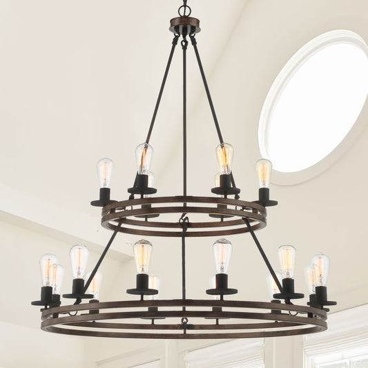 Jasper 18-Light Wagon Wheel Tiered Chandelier with Wood Accents UL Listed