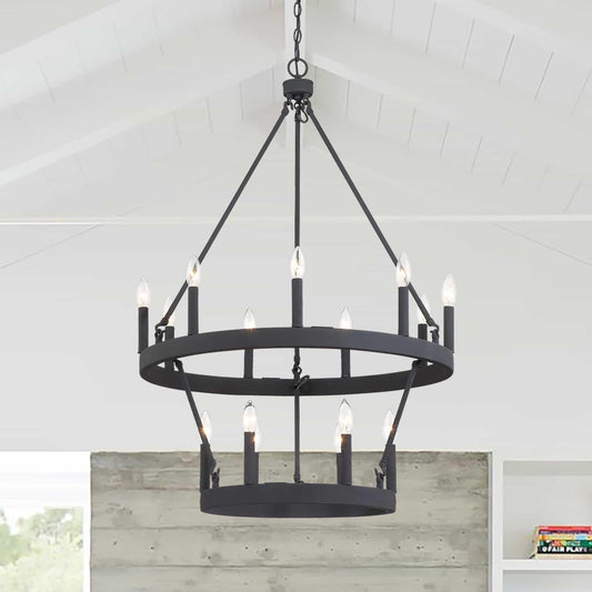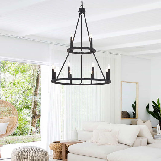 Binnur 12-Light Candle Style Wagon Wheel Tiered Chandelier UL Listed