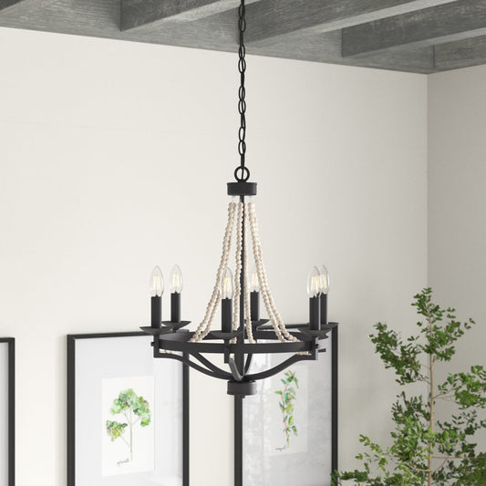 Streator 12-Light Candle Style Wagon Wheel Wood Beaded Chandelier UL Listed
