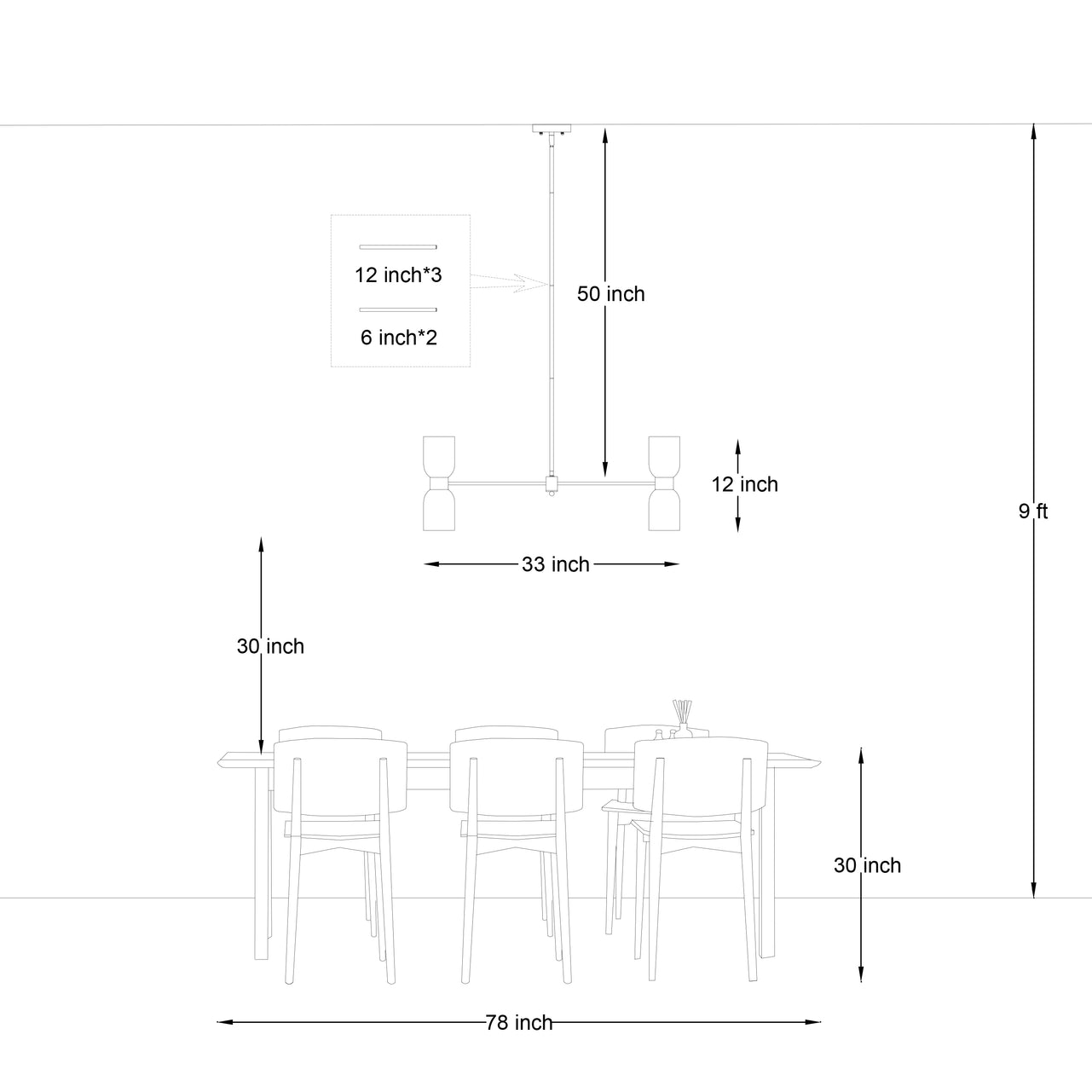 | Fixture | 12'' H X 33'' W X 5'' D |