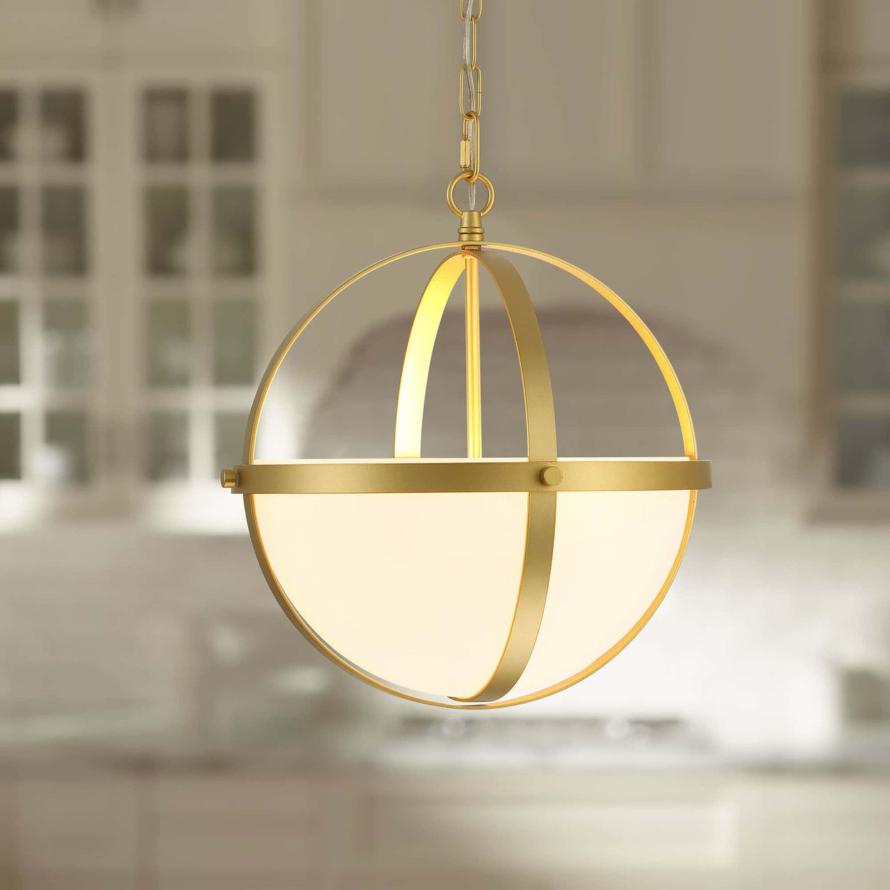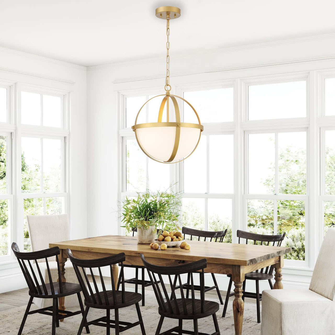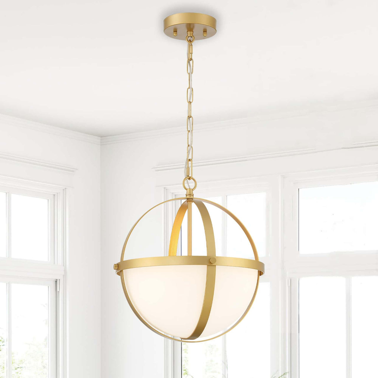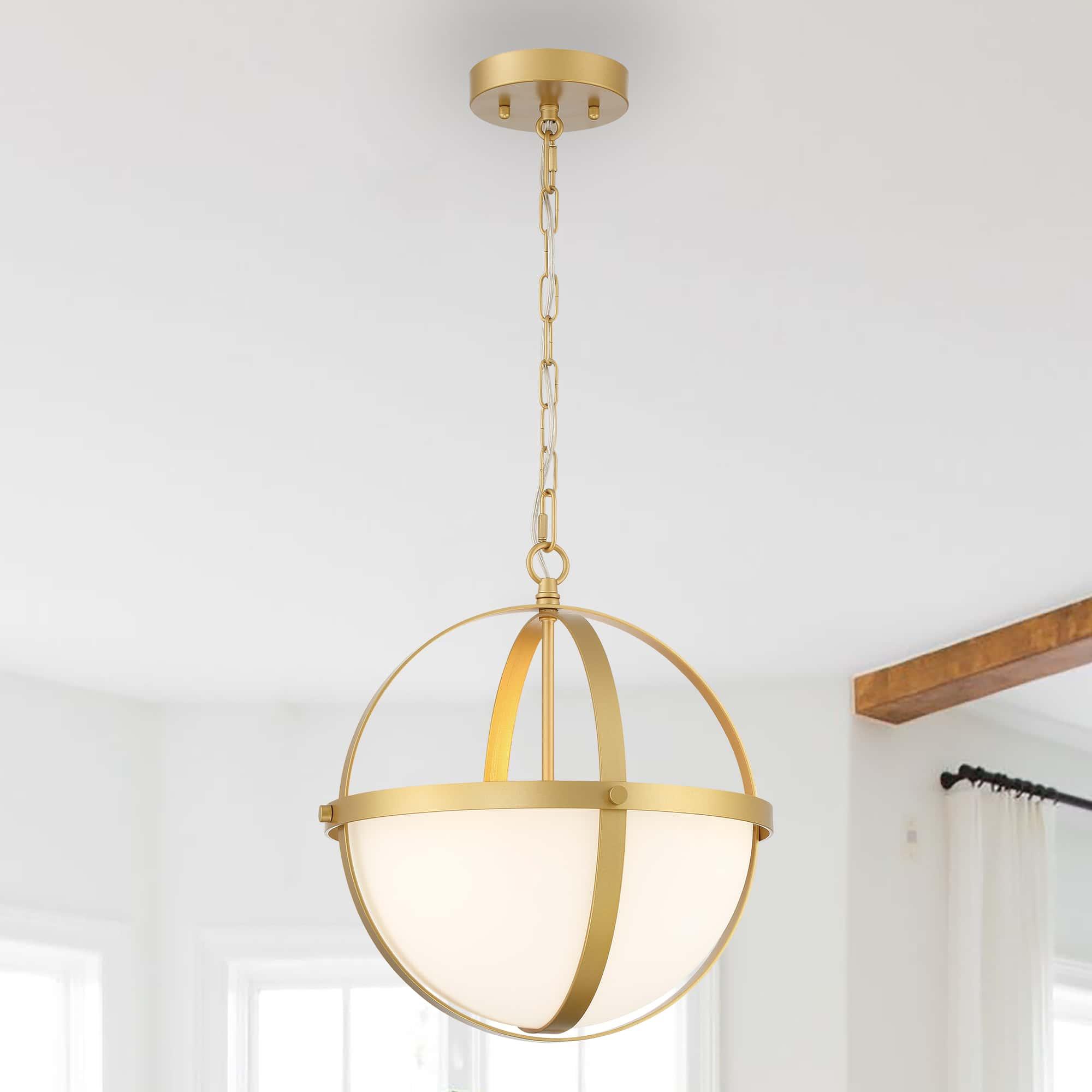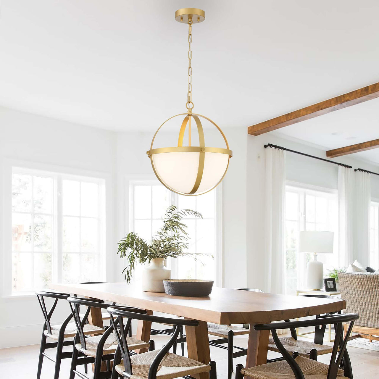 This spherical pendant chandelier brings plenty of vibes to your dining area or living room. We love the design that features a hollowed-out top and closed bottom. The open globe frame is crafted from steel with a glam gold finish, while the lower half consists of an upward-facing cream-toned glass bowl shade. Hidden within are the bulbs, providing a soft dimmable glow that's controllable through a mobile app after it's set up. A chain with an adjustable length helps keep this luminary aloft, and it's compatible with sloped ceilings with an adapter included for your convenience.